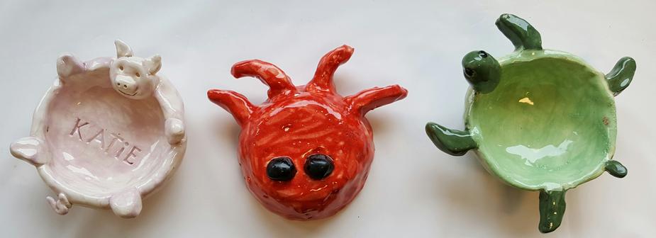 Handbuilding: Participants will use pinch, coil and slab techniques along with molds to create and paint a ceramic project. Our workshops will have a specific theme but kids are free to decorate as you like. Drop off only